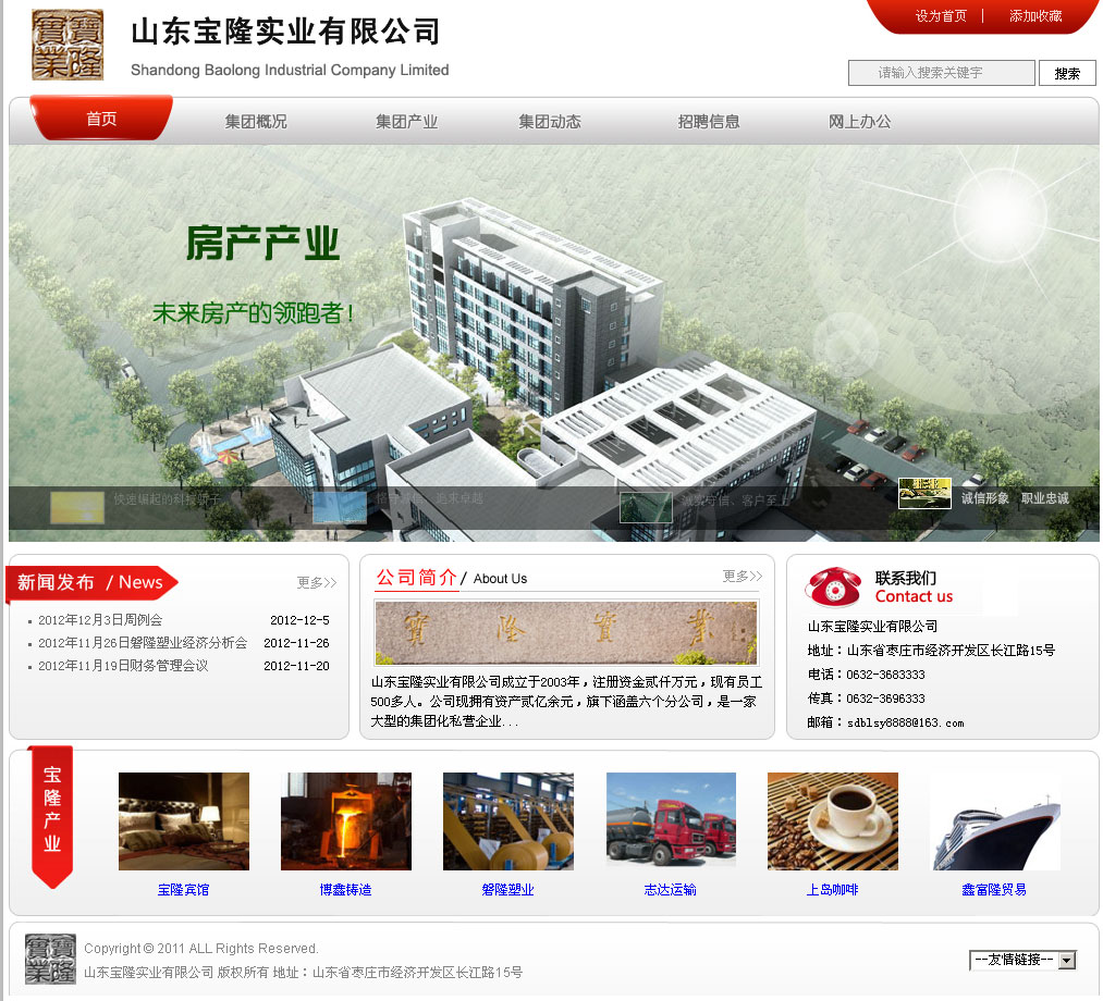 棗莊網(wǎng)站制作:山東寶隆實(shí)業(yè)有限公司成立于2003年,公司注冊(cè)資本金貳仟萬(wàn)元,現(xiàn)有職工500余人。公司現(xiàn)擁有資產(chǎn)叁億余元,旗下涵蓋六個(gè)分公司。 公司總部位于山東省棗莊市工業(yè)園長(zhǎng)江路15號(hào),地處省級(jí)經(jīng)濟(jì)開(kāi)發(fā)區(qū),南臨運(yùn)河,北臨京福高速公路,西距京滬高鐵,距著名的旅游景區(qū)臺(tái)兒莊運(yùn)河古城、微山湖濕地公園均40公里。地理位置優(yōu)越,交通便利,環(huán)境優(yōu)美。 公司是一家以銷(xiāo)售煤炭、石膏、水泥、熟料等建筑材料為主營(yíng)業(yè)務(wù),以生產(chǎn)和經(jīng)營(yíng)耐磨材料、塑編袋、物流運(yùn)輸、化工原料、地?zé)岵牧蠟檩o營(yíng)業(yè)務(wù),同時(shí)經(jīng)營(yíng)房地產(chǎn)行業(yè)的綜合性集團(tuán)化私營(yíng)企業(yè)。公司自成立以來(lái),經(jīng)營(yíng)業(yè)績(jī)穩(wěn)定提升,與中國(guó)聯(lián)合水泥集團(tuán)有限公司(CUCC)、棗莊礦業(yè)集團(tuán)等多家大型企業(yè)建立了長(zhǎng)期穩(wěn)定的戰(zhàn)略合作伙伴關(guān)系。 寶隆實(shí)業(yè)始終秉承著“恪守誠(chéng)信,追求卓越”的經(jīng)營(yíng)理念,以“誠(chéng)實(shí)守信、客戶(hù)至上”為營(yíng)銷(xiāo)宗旨,遵循“平等互利、合作共贏”的原則;以“樹(shù)寶隆形象,創(chuàng)寶隆品牌”為目標(biāo),艱苦奮斗、務(wù)實(shí)創(chuàng)新,公司在激烈的市場(chǎng)競(jìng)爭(zhēng)中表現(xiàn)出巨大的進(jìn)取心,煥發(fā)出蓬勃生機(jī),用誠(chéng)信和實(shí)力創(chuàng)造寶隆曠世偉業(yè),這是寶隆人不懈的追求! 2011年,寶隆實(shí)業(yè)已走過(guò)九年的發(fā)展歷程,九年,在漫長(zhǎng)的歷史長(zhǎng)河中只是短暫的瞬間,但對(duì)于寶隆人來(lái)說(shuō),這是一段永載史冊(cè)、奮發(fā)有為、成就百年基業(yè)的創(chuàng)業(yè)歷程,寶隆人用青春、汗水、和智慧譜寫(xiě)了一曲華彩樂(lè)章。九年的櫛風(fēng)沐雨,九年春華秋實(shí);九載磨礪拼搏,九載碩果累。九年的堅(jiān)守、堅(jiān)韌、堅(jiān)持,所有的積累,所有的沉淀,讓寶隆實(shí)業(yè)增強(qiáng)了實(shí)力和能力,讓寶隆人增添了勇氣和底氣,寶隆實(shí)業(yè)在激烈的市場(chǎng)競(jìng)爭(zhēng)中敢于亮劍,敢于向世界一流巔峰企業(yè)發(fā)起挑戰(zhàn),這是全體寶隆人時(shí)刻保持著的、永遠(yuǎn)都不可磨滅的寶隆意志。 今天,寶隆人在此收拾好往日的榮耀。明天,寶隆人又將迎著朝陽(yáng),帶著堅(jiān)毅的目光,踏上任重道遠(yuǎn)的征程,朝著下一個(gè)光輝楊帆遠(yuǎn)航…… 棗莊網(wǎng)站建設(shè) |