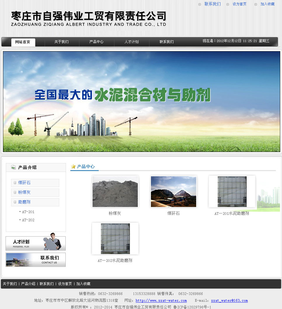 棗莊市自強(qiáng)偉業(yè)工貿(mào)有限責(zé)任公司是一家專門從事水泥混合材料、水泥化學(xué)助劑生產(chǎn)、銷售為一體的規(guī);尽9境D旯⿷(yīng)煤矸石、粉煤灰等水泥生產(chǎn)用混合材料,以及水泥助磨劑、三乙醇胺、乙二醇等水泥生產(chǎn)用化學(xué)助劑。公司注冊(cè)資金300萬元,是全國(guó)大的水泥混合材與助劑供應(yīng)商之一,現(xiàn)有資源與產(chǎn)品介紹如下: 煤矸石 公司擁有550萬噸煤矸石資源,主要供應(yīng)棗莊中聯(lián)水泥廠、臨沂沂州水泥廠、山東金橋水泥廠以及棗莊周邊50余家粉磨站。是全國(guó)大的煤矸石資源提供商。 粉煤灰 公司擁有590萬噸濕粉煤灰資源,以及年產(chǎn)20萬噸干粉煤灰生產(chǎn)線,主要有一級(jí)灰、二級(jí)灰和濕灰三種產(chǎn)品。是全國(guó)大的粉煤灰濕灰資源提供商。 助磨劑 主要產(chǎn)品有AT系列水泥助磨劑。維持原來強(qiáng)度,可多摻9-11%混合材,提高磨機(jī)10-20%產(chǎn)量。 水處理劑 主營(yíng)產(chǎn)品有阻垢劑、緩蝕劑、殺菌滅藻劑、清洗劑、預(yù)膜劑、螯合劑、分散劑、反滲透藥劑、膜阻垢劑等,廣泛應(yīng)用于工業(yè)循環(huán)水、鍋爐及采暖水、油田注水、反滲透膜等系統(tǒng)。