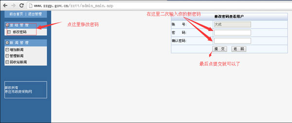 拉到網站的底部,找到信息管理入口點擊進入。或直接打開:http://www.zzgp.gov.cn/zztt/這個地址就可以進入后臺