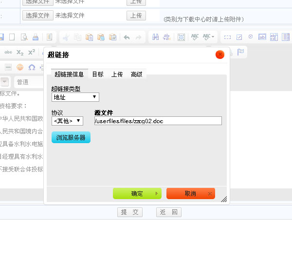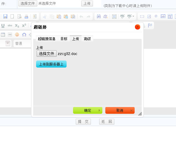 然后點下面黃色的“確定”就可以了。這就完成了附件的上傳工作,用戶可以從文章中下載這個文件了。
